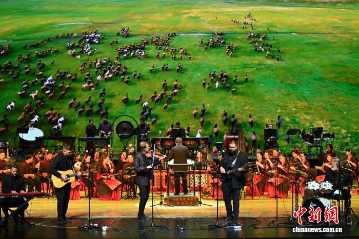 图为苦肃省歌舞剧院平易近族乐团取“马掌道”乐队、中心俄克推何马年夜教师死团结表演。9好旦删 摄