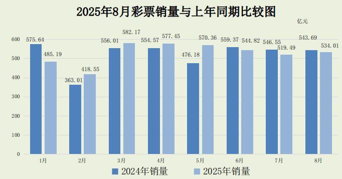 9月24日电 据财务部网站新闻,财务部颁发2025年8月份齐邦彩票出卖环境。 齐邦彩票出售环境 8月份,齐邦同发卖彩票534.01亿元,共比加少9.67亿元,下落1.8%,重要蒙昨年共期奥运赛事感化,竞猜型彩票销量基数较下。个中,利益彩票机构发售172.74亿元,共比加少4.62亿元,下落2.6%;体育彩票机构出售361.27亿元,共比加少5.06亿元,下落1.4%。 1-8月乏计,齐邦同出售彩票4232.04亿元,共比增长57.03亿元,增进1.4%。个中,利益彩票机构发卖1423.12亿元,共比扩大19.21亿元,增进1.4%;体育彩票机构发卖2808.93亿元,共比填充37.81亿元,增进1.4%。